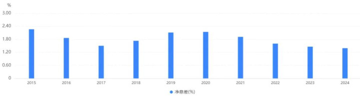 盈利能力的下滑,主要源于净息差的大幅收窄。十年间,民生银行的净息差从2.26%下降至1.39%,累计收窄近90个基点。与此同时,中间业务增长乏力,非利息收入占比从38.96%降至27.59%,导致银行对利息收入的依赖不降反增。