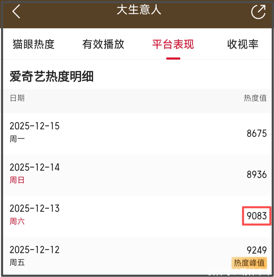 更让人哭笑不得的是,《大生意人》会员收官的日子是13号,这一天还是周六,可以称得上是热度上的话黄金时间。但是,该剧的热度在这一天却不增反降,收官日热度堪堪维持在9000以上。收官次日,也就是周日,该剧的热度直接跌破9000。完结之后,剧集的热度更是一跌再跌,该剧之后恐怕不会有太突出的长尾效应了。