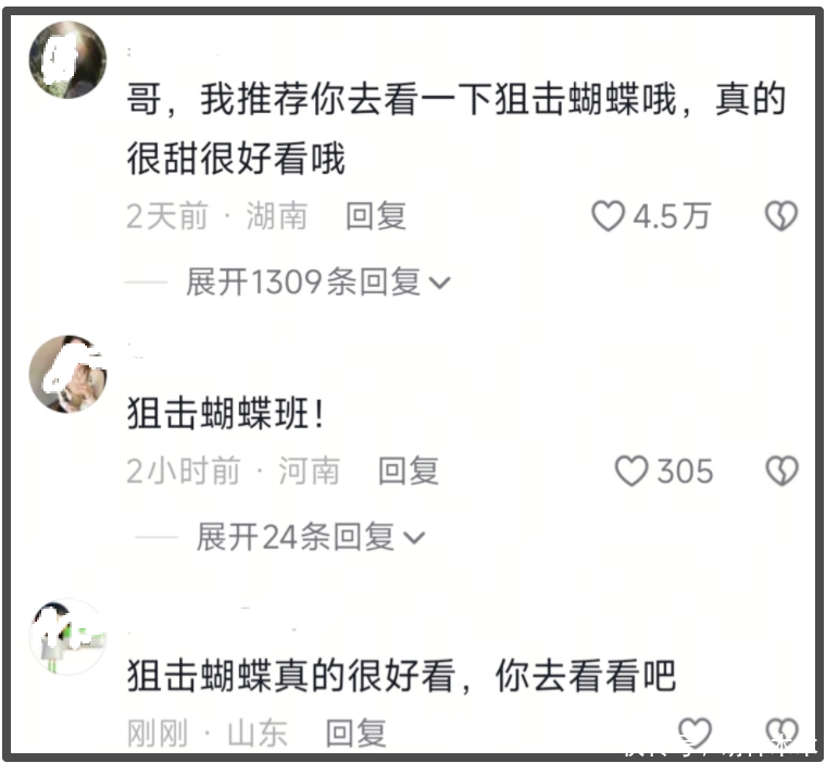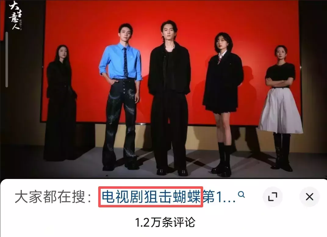 陈晓社交账号的最新动态就是为了宣传《大生意人》而拍摄的共创视频,视频的下方的相关搜索甚至不是《大生意人》,而是《狙击蝴蝶》。打开评论区,《狙击蝴蝶》的提及率高的惊人,大家纷纷在推荐陈晓去看前妻陈妍希的新剧,还有《狙击蝴蝶》的剧粉在陈晓的评论区“团建”。
