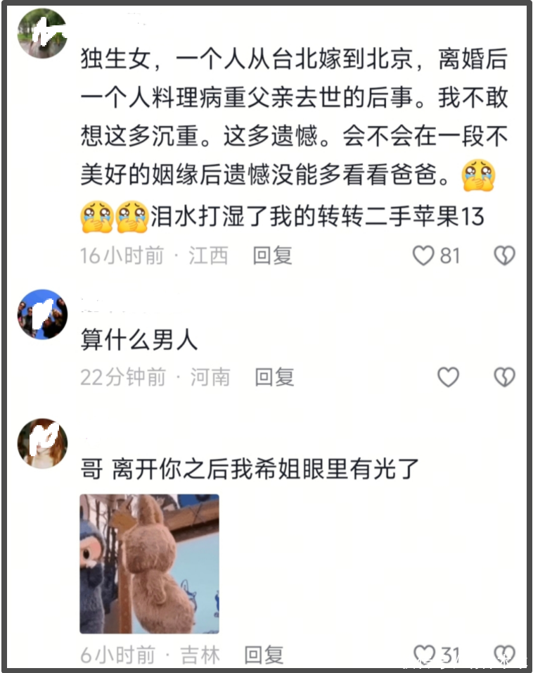 除此之外,还有一大批的网友在陈晓的评论区为陈妍希打抱不平,心疼陈妍希过去为爱情、为家庭做出的种种牺牲,讽刺陈晓“算什么男人”。此前,总有粉丝喊着陈晓结婚之后眼里没有光了。如今,回旋镖来了,离开陈晓之后的陈妍希眼里有光了。