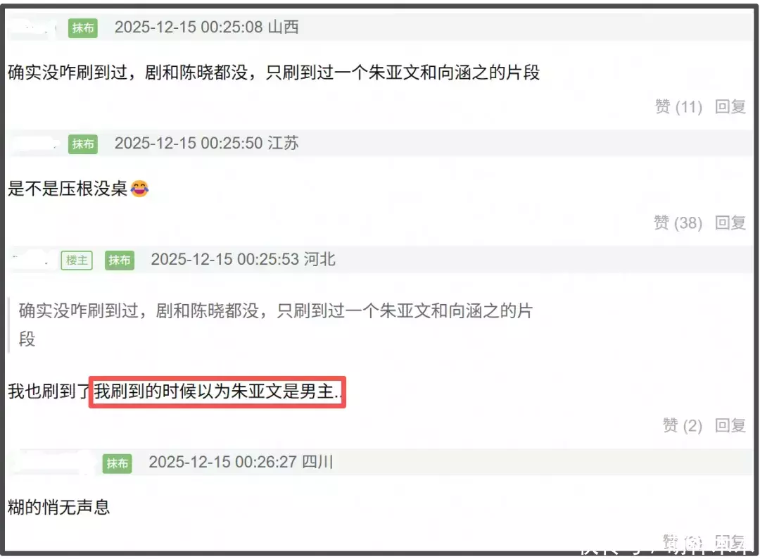 值得一提的是,在《大生意人》本就成绩一般的情况下,陈晓还被男二掀了桌。比起陈晓和孙千在剧中的主cp点点金,朱亚文和向涵之这对剧中的副cp热度明显更出圈,甚至有网友因为刷到的相关片段太多,误以为该剧的男主演是朱亚文。